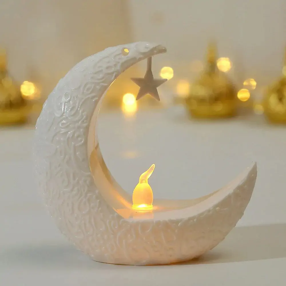 ضوء LED نجمة وقمر مع شمعة إلكترونية